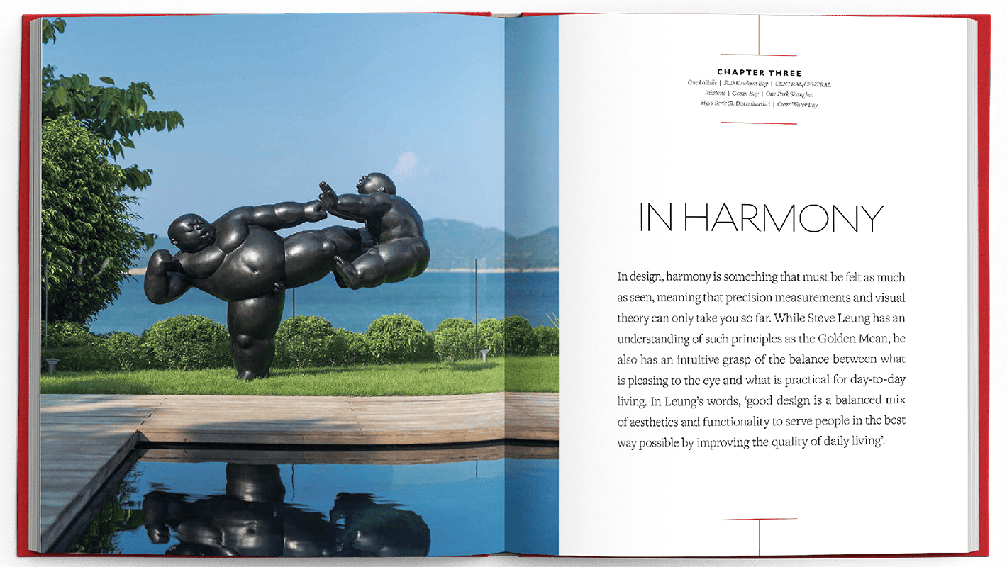 DFT initiated the monograph creative direction by carefully studying and incorporating the Steve Leung Design branding including the brand assets—from color palette, typographic style, and linear brand elements that are then made into the building blocks of the full editorial design. Though carefully gridded, the scale of imagery are set to be dynamic and emphasized the impactful photography of a collection of international photographers that documented the projects with stunning visuals.