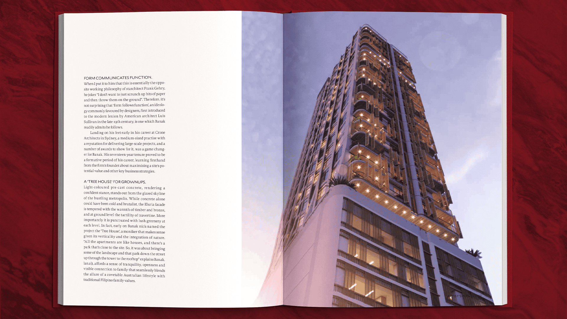 Drawing from DFT’s extensive editorial and publishing expertise, a lush (soon-to-be-launched) monograph will be the most tactile expression of Eluria’s vision. Written in a defined Eluria brand tone of voice that avoids superlatives and pandering writing prevalent in property development marketing, the monograph uses expressive, intimate language that mirrors the real estate property’s ethos with clarity and passion.